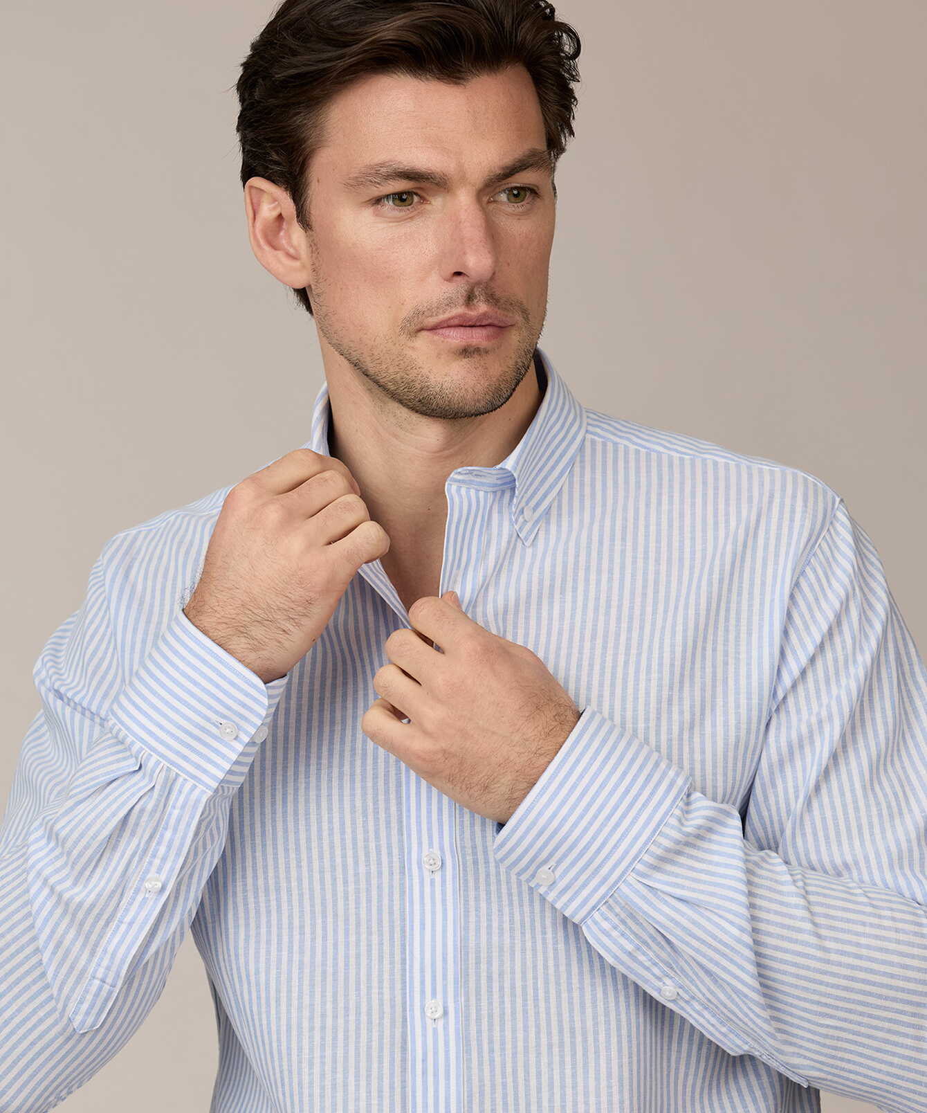 Subtle stripes in light blue tones create a fresh and timeless look that can be dressed up or down with ease. The buttons are secured with Ascolite®, ensuring they remain firmly in place even after repeated washing.
