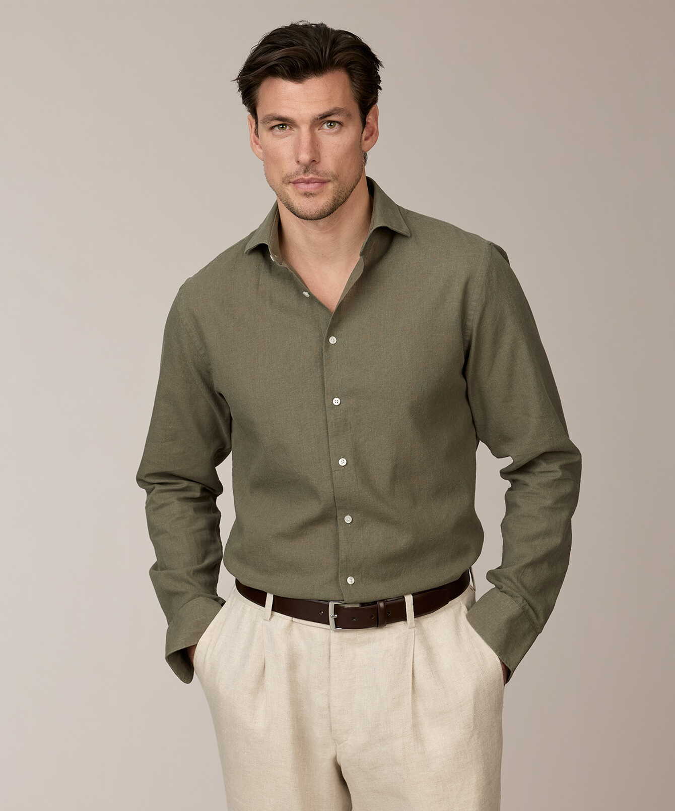 Sorrento är en tidlös skjorta i en luftig linne- och bomullsblandning som kombinerar komfort med avslappnad elegans. Den har en slim fit-passform, cut away-krage och enkel manschett för en sofistikerad, modern silhuett. Förtvättad kvalitet och slitstarka Ascolite®-knappar ger en exklusiv känsla – perfekt för både vardag och sommarens mer uppklädda tillfällen.